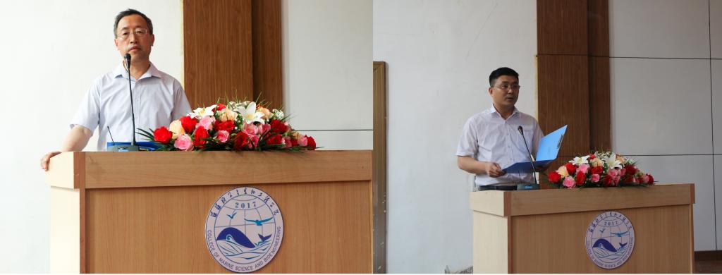 會議上,盧中彬老師宣讀了《海洋學(xué)院黨字【2017】7號關(guān)于成立“紅色引擎”黨員工作站的決定》,校學(xué)生會主席王然然宣讀了關(guān)于成立海洋學(xué)院第一屆學(xué)生會的批復(fù),王祥梅老師宣布第一屆學(xué)生會成員名單,兄弟院系學(xué)生會主席代表先后致賀詞,黨站站長付文靜與第一屆學(xué)生會主席王珞分別作了就職演講,臺上領(lǐng)導(dǎo)和嘉賓為黨站委員和學(xué)生會骨干頒發(fā)聘書。