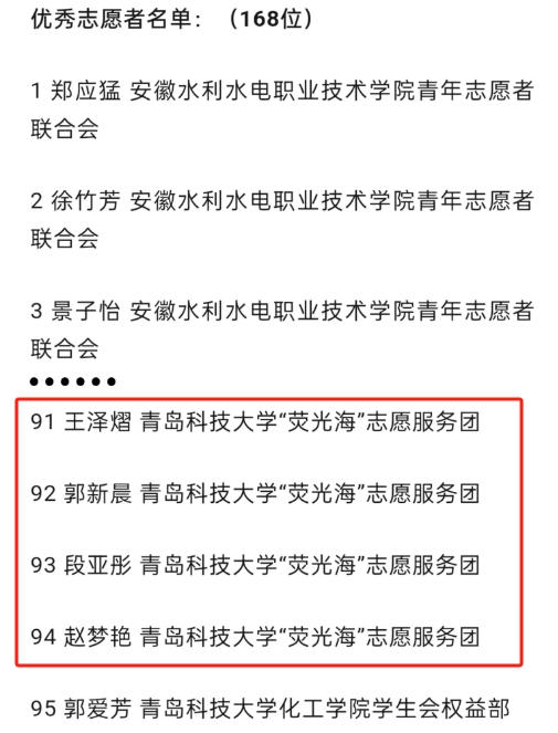 我院“熒光海”志愿宣講(服務(wù))團(tuán)獲評(píng)優(yōu)秀社團(tuán)(全國(guó)僅58個(gè)),王澤熠、郭新晨、段亞彤、趙夢(mèng)艷獲評(píng)優(yōu)秀志愿者(全國(guó)僅168位)。