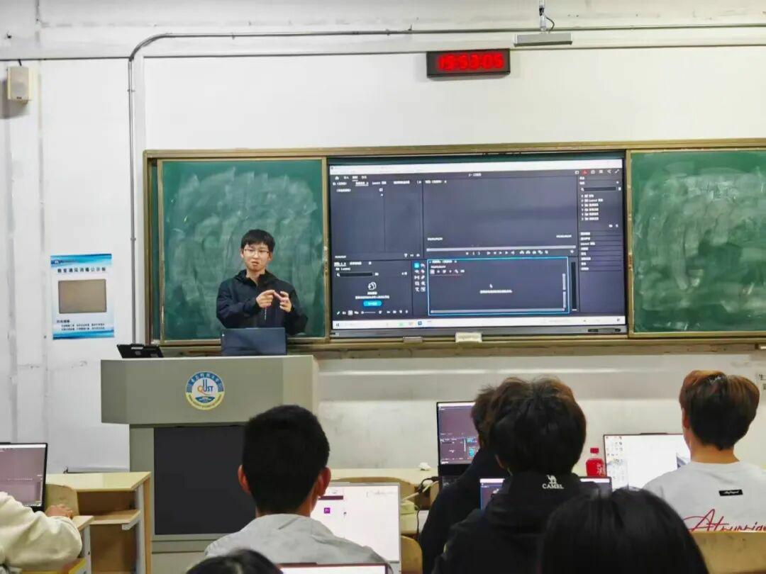培訓(xùn)中,蒲一鳴以“理論講解+案例演示+實(shí)操指導(dǎo)”的方式展開教學(xué)。他首先系統(tǒng)介紹了PR軟件的界面布局、核心功能模塊及基礎(chǔ)操作邏輯,幫助學(xué)員快速建立對軟件的整體認(rèn)知。隨后,結(jié)合學(xué)院往期優(yōu)秀宣傳視頻案例,從素材導(dǎo)入、剪輯拼接、轉(zhuǎn)場設(shè)計(jì)到字幕添加、音頻處理等環(huán)節(jié),分步演示視頻制作全流程,并重點(diǎn)講解了調(diào)色技巧、節(jié)奏把控等提升作品質(zhì)感的關(guān)鍵方法。在實(shí)踐環(huán)節(jié),學(xué)員們分組進(jìn)行操作演練,圍繞“學(xué)院活動記錄”“實(shí)驗(yàn)室日常”等主題嘗試剪輯短視頻。蒲一鳴穿梭于各組之間,針對學(xué)員們提出的“素材銜接不流暢”“轉(zhuǎn)場效果生硬”等問題進(jìn)行一對一指導(dǎo),通過現(xiàn)場調(diào)試參數(shù)、演示優(yōu)化方案,幫助大家突破操作瓶頸。互動交流中,學(xué)員們結(jié)合自身宣傳工作經(jīng)歷分享困惑與心得,現(xiàn)場學(xué)習(xí)氛圍濃厚。