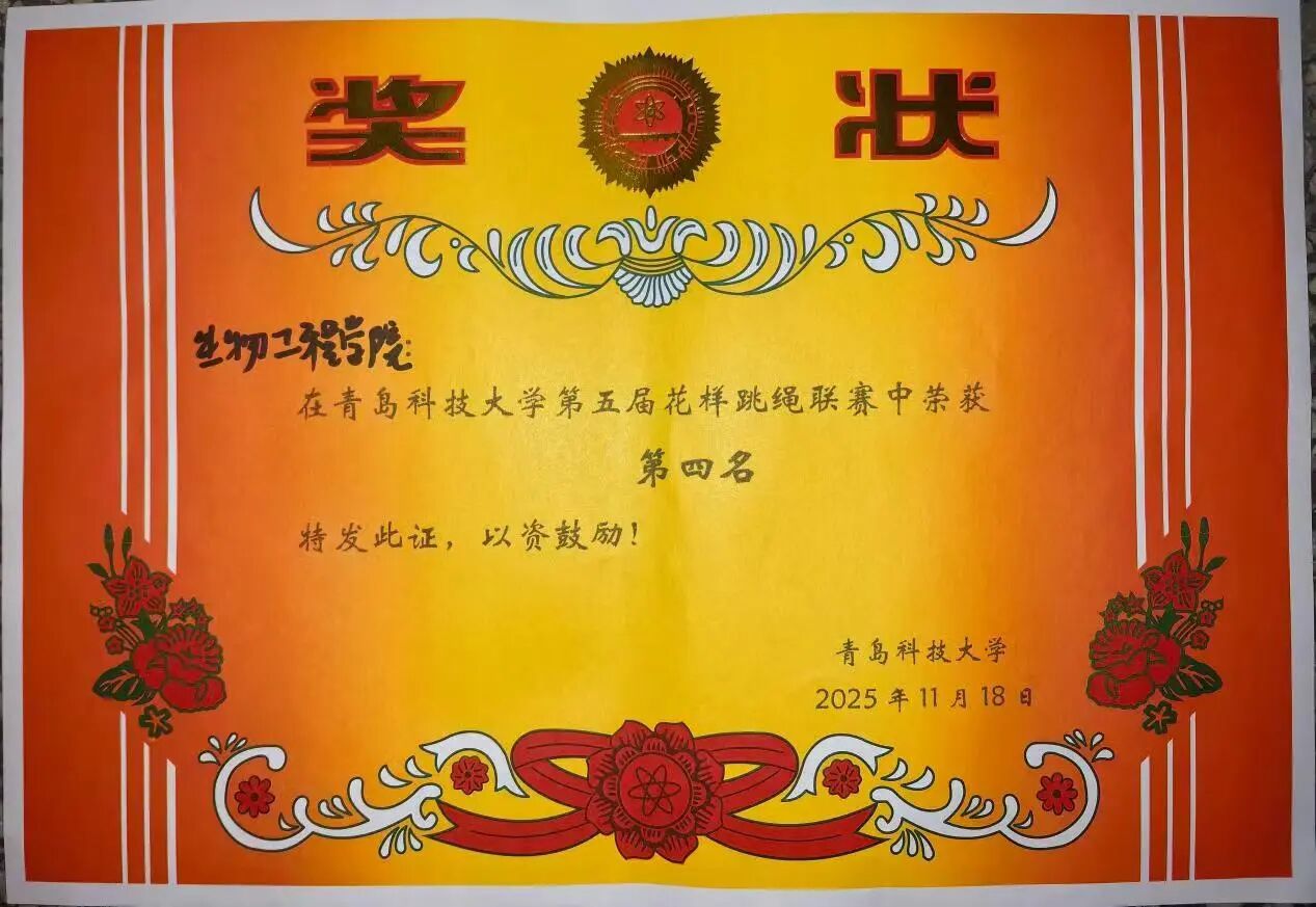 11月18日,青島科技大學(xué)第五屆花樣跳繩比賽在籃球場(chǎng)燃情開賽,生物工程學(xué)院代表隊(duì)奮勇爭(zhēng)先,在單搖接力與八字跳繩兩大項(xiàng)目中默契協(xié)作、奮力拼搏,最終以出色表現(xiàn)斬獲團(tuán)體第四名的優(yōu)異成績(jī),充分展現(xiàn)了生工學(xué)子的青春活力與團(tuán)隊(duì)精神。