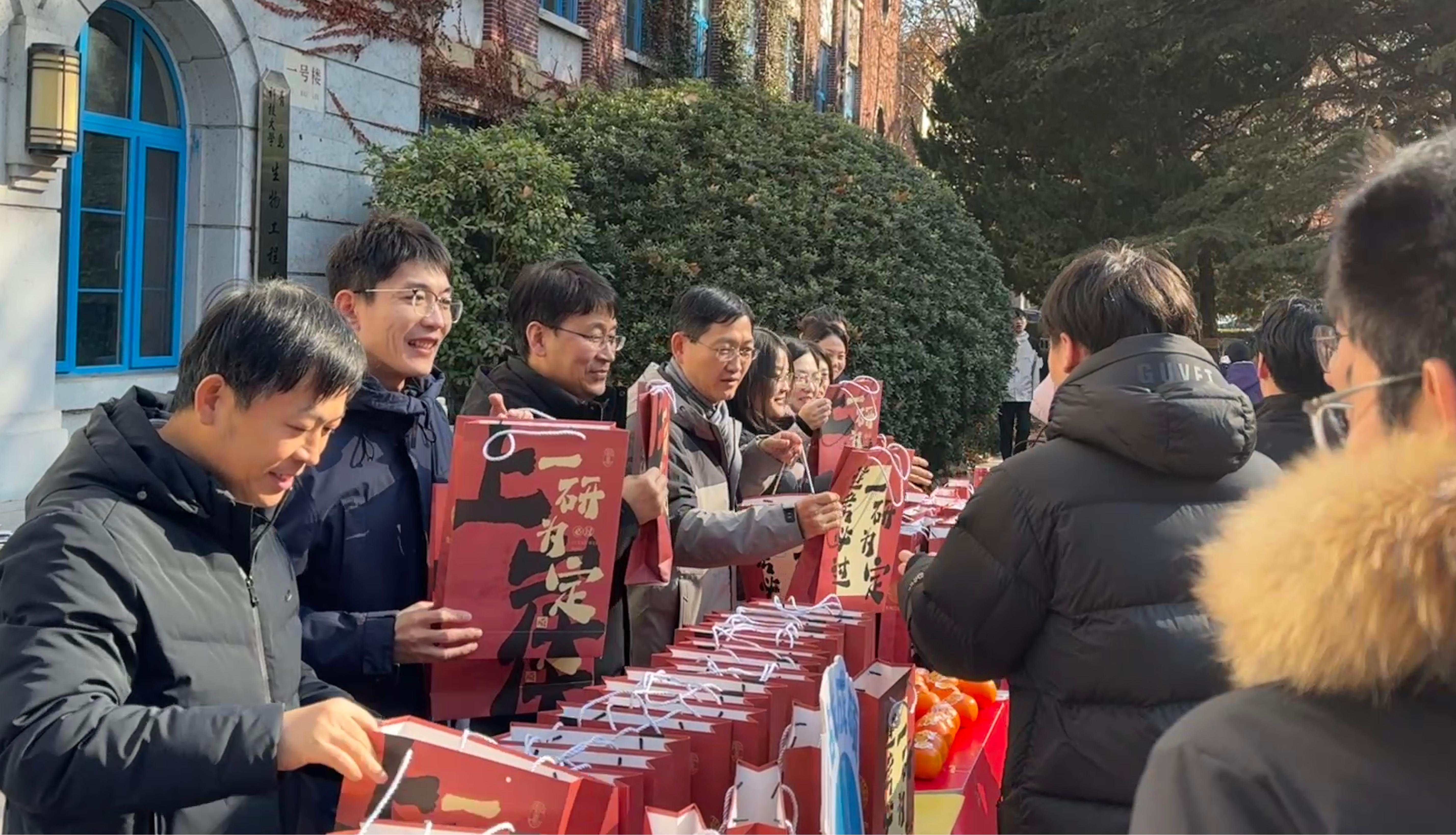 學院黨委書記周憲鋒、院長顧玉超、黨委副書記兼副院長劉浩、副院長孟祥民、團委書記兼學工辦主任秦洪慶及各年級輔導員、2022級班主任代表學院為2022級考研學子們分發(fā)禮包,這份“考研禮包”中藏著滿滿的“奪冠密碼”:飽滿橙子寓意著“橙風破浪,一舉成碩”,愿學子們考場披荊斬棘、勢不可當;香甜旺仔牛奶承載著“旺力全開,高分上岸”的祝福,盼大家發(fā)揮超常、實力爆棚;簡約實用的筆記本,寄托著“筆耕不輟,研途篤行”的期許,愿學子們在逐夢路上沉淀每一份積累;貼心暖寶寶化身“備考鎧甲”,為挑燈夜戰(zhàn)的追夢人驅散寒意,守護每一份專注與堅守。學院始終關注考研學子的備考狀態(tài),此次禮包發(fā)放既是對大家堅持與付出的肯定,更是對學子們金榜題名的殷切期盼。
