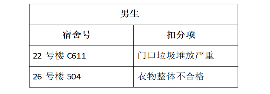 請各年級對照問題監(jiān)督不合格宿舍進(jìn)行整改。