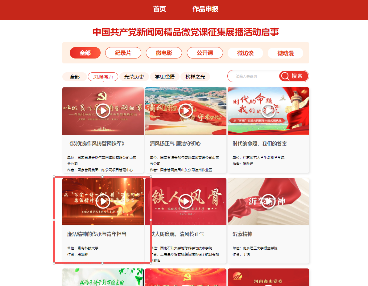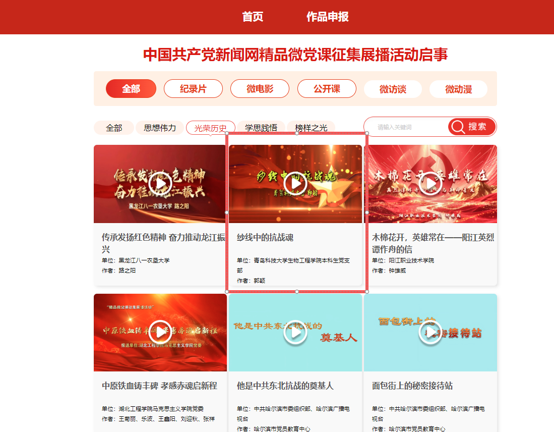 2025年7月,中國共產(chǎn)黨新聞網(wǎng)面向全國各地各領(lǐng)域基層黨組織啟動精品微黨課征集展播活動,全國共189部作品上榜。生物工程學(xué)院選送的微黨課《紗線中的抗戰(zhàn)魂》入選中國共產(chǎn)黨新聞網(wǎng)精品微黨課征集展播活動微電影系列“光榮歷史”欄目,微黨課《廉潔精神的傳承與青年擔(dān)當(dāng)》入選中國共產(chǎn)黨新聞網(wǎng)精品微黨課征集展播活動微電影系列“思想偉力”欄目。