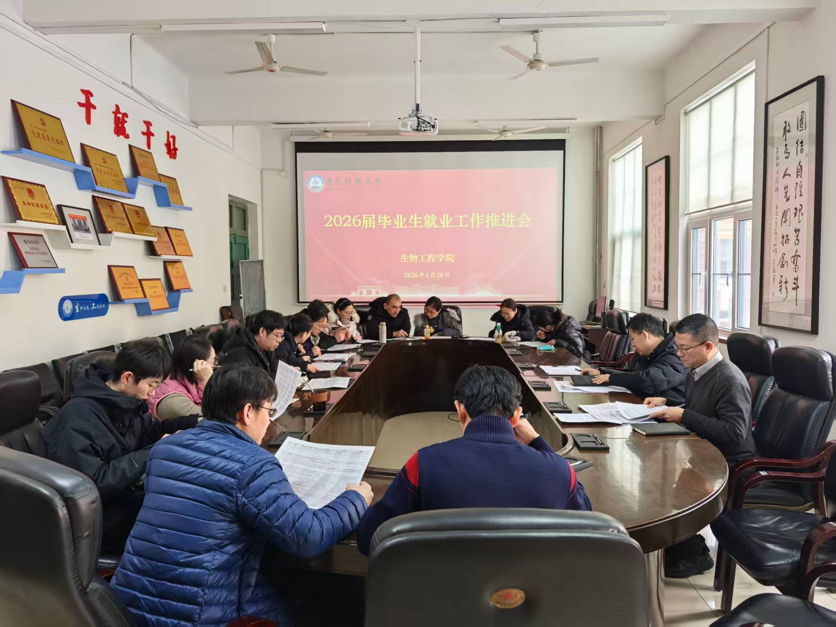 為扎實(shí)推進(jìn)2026屆畢業(yè)生就業(yè)工作,精準(zhǔn)掌握畢業(yè)生就業(yè)進(jìn)展,1月20日,生物工程學(xué)院在四方校區(qū)一政213召開2026屆畢業(yè)生就業(yè)工作推進(jìn)會(huì)。學(xué)院領(lǐng)導(dǎo)班子成員、各教研室主任及2022級(jí)班主任、輔導(dǎo)員參加會(huì)議,會(huì)議由黨委副書記兼副院長(zhǎng)劉浩主持。