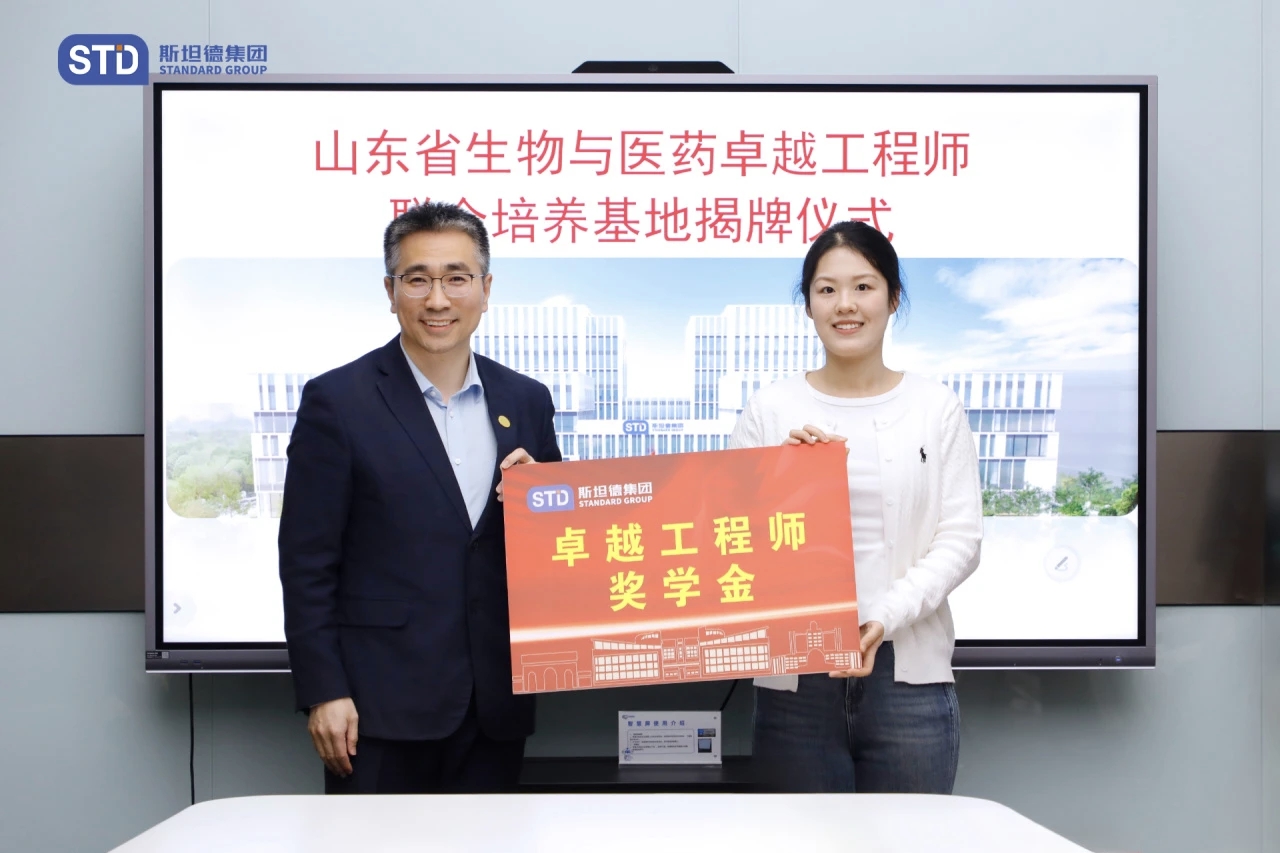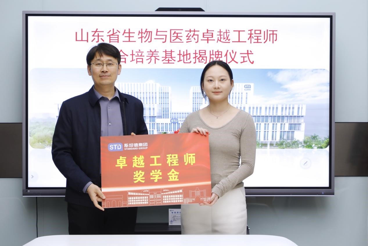 劉浩、生物工程學(xué)院院長顧玉超共同頒發(fā)斯坦德集團卓越工程師獎學(xué)金。