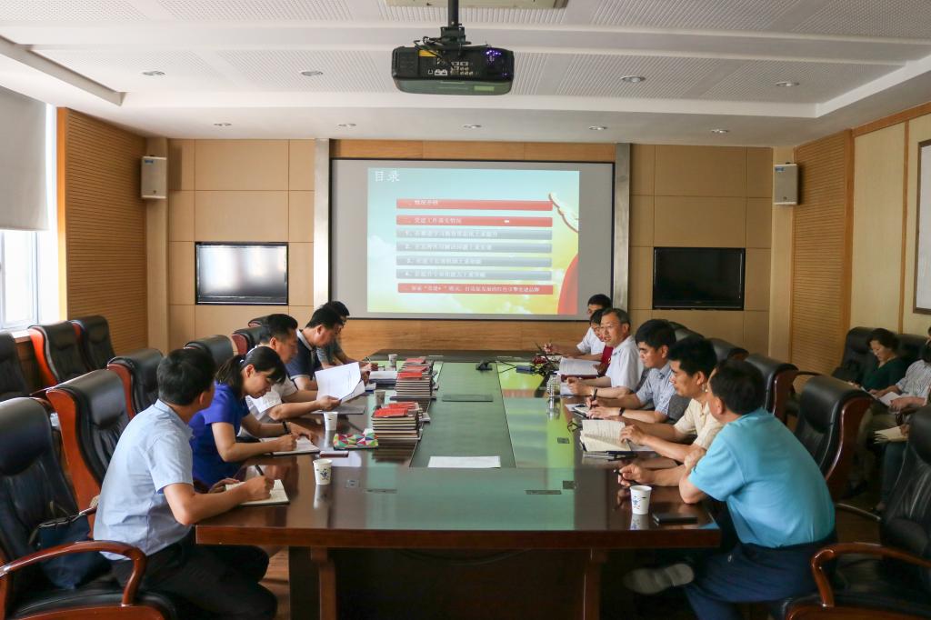 鄭德前一行先后實地考察了學(xué)院的辦公場所,深入了解了學(xué)院文化建設(shè)及“紅色引擎”黨員工作站活動開展情況,聽取了學(xué)院關(guān)于“兩學(xué)一做”學(xué)習(xí)教育工作匯報,并與參會的全體黨員進(jìn)行了座談。匯報會上,黨總支書記劉同剛首先代表學(xué)院對督導(dǎo)組的蒞臨指導(dǎo)表示歡迎和感謝,隨后結(jié)合實際,從四個方面匯報了學(xué)院“兩學(xué)一做”學(xué)習(xí)教育開展情況。院長陳夫山就學(xué)院師資隊伍建設(shè)和專業(yè)平臺建設(shè)向督導(dǎo)組做了匯報,重點介紹了學(xué)院學(xué)科建設(shè)方面取得的成果及存在的問題。