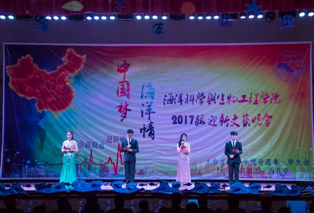 為深入貫徹十九大系列重要講話精神,加強(qiáng)學(xué)院文化建設(shè),提高海洋學(xué)院學(xué)子精神風(fēng)貌,11月23號晚,海洋學(xué)院“中國夢,海洋情”迎新晚會在四方校區(qū)西禮堂盛大舉行,海洋學(xué)院院長陳夫山、黨總支書記劉同剛、黨總支副書記兼副院長盧中彬、副院長范金石、各兄弟院系的老師們以及海洋學(xué)院全體師生共同觀看了此次晚會,本次晚會共分為三個篇章。