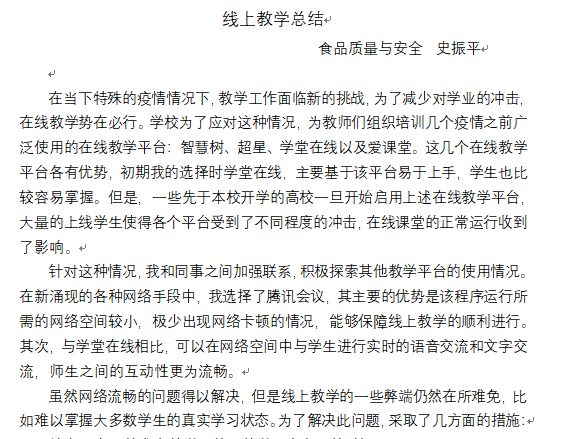 “疫”絲不茍,展教學風采。為降低疫情對學生學業(yè)的沖擊力度,保證教學任務高質量完成,全國范圍內開啟“網(wǎng)課”模式。學院教師團隊依循“停課不停學”的方針開始線上教學,冷靜應對疫情帶來的困擾,承擔起網(wǎng)絡教學任務。在疫情面前,老師們充分利用網(wǎng)絡教學平臺,以直播、網(wǎng)絡課程等多種形式進行教學,并及時建立起學習群,分享各種學習資源,更能隨時為學生答題解疑。針對大三、大四的學生,各指導老師仔細分析了學生的畢業(yè)論文和實踐任務,盡其所能答疑解惑;對剛考研結束的學生,畢業(yè)年級輔導員也切實統(tǒng)計了同學們的考研情況,詢問他們現(xiàn)階段所面臨的難題以幫助其解決,以穩(wěn)定考研學生們的心態(tài);各位研究生導師積極同自己的學生展開交流,了解他們在家的學習和生活情況,保證科研工作的接續(xù)性。