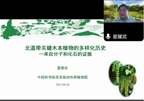 星耀武研究員首先介紹了北半球植物區(qū)系備受生物地理學(xué)家關(guān)注的研究背景,再結(jié)合來(lái)自分子和化石的證據(jù),詳解了榆科對(duì)洲際多樣性差異格局的形成歷史,胡桃科的起源擴(kuò)散、生物地理、性狀演化這兩個(gè)研究案例。