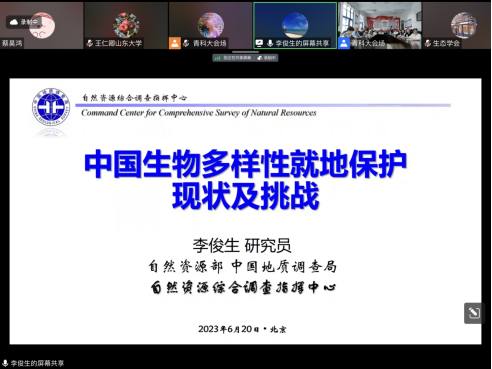 2023年6月20日上午,由山東省生態(tài)學(xué)會(huì)與青島科技大學(xué)海洋學(xué)院共同主辦的“生態(tài)大講堂”系列講座,通過線上與線下結(jié)合的方式順利舉行。報(bào)告會(huì)邀請(qǐng)中國(guó)地質(zhì)調(diào)查局自然資源綜合調(diào)查中心副總工程師-李俊生研究員,中國(guó)科學(xué)院西雙版納熱帶植物園-星耀武研究員,分別為師生帶來(lái)題為“我國(guó)生物多樣性就地保護(hù)現(xiàn)狀及挑戰(zhàn)”、“北溫帶木本植物多樣化歷史”的學(xué)術(shù)講座。本次講座由山東省生態(tài)學(xué)會(huì)劉大勝秘書長(zhǎng)與青島科技大學(xué)海洋學(xué)院王碩教授主持,來(lái)自各地高校及科研機(jī)構(gòu)的300多位學(xué)者和研究人員參與了此次會(huì)議。