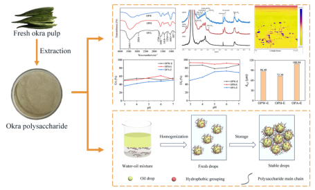 近期,海洋學(xué)院李銀平副教授在秋葵多糖穩(wěn)定的水包油乳液領(lǐng)域取得了一定的進(jìn)展。相關(guān)成果成功設(shè)計(jì)并制備了三種RG-I含量高的秋葵多糖乳化劑。研究發(fā)現(xiàn),通過酸提取的秋葵多糖乳化性能顯著優(yōu)于商用柑橘果膠和甜菜果膠。此外,在較寬的pH范圍以及較低的濃度下,該乳化劑均能表現(xiàn)出良好的乳化活性。因此,秋葵多糖是一種極具發(fā)展前景的天然乳化劑,該研究也可以在一定程度上推動(dòng)秋葵的產(chǎn)業(yè)升級(jí)。