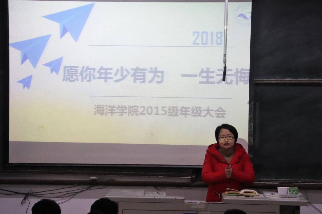 12月25日下午3:00,海洋科學(xué)與生物工程學(xué)院在一教202召開了2015級(jí)年級(jí)大會(huì)。本次大會(huì)由15級(jí)輔導(dǎo)員辛雪瓊老師主持召開,海洋學(xué)院2015級(jí)全體同學(xué)參加。