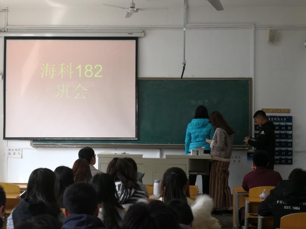 總結(jié):這次班會上,同學們清楚了自己上學期不足之處,明確了新學期的目標,方向。班級凝聚力增強。相信新的學期,海科182班能再創(chuàng)輝煌!