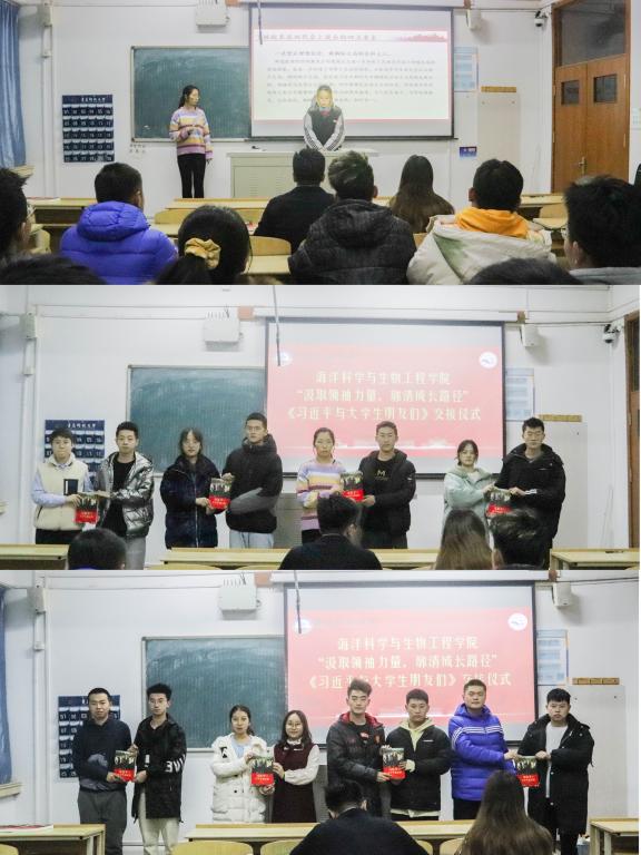會(huì)上,收到馬書記贈(zèng)書的名學(xué)生代表將《習(xí)近平與大學(xué)生朋友們》一書傳遞給20級(jí)班長(zhǎng)團(tuán)支書,作為學(xué)院“個(gè)十百千萬(wàn)”讀書接力計(jì)劃的啟動(dòng)儀式。輕化192班團(tuán)支書張卓爾帶領(lǐng)大家學(xué)習(xí)副校長(zhǎng)丁林在學(xué)代會(huì)上的講話,并向全體青年學(xué)生的發(fā)出倡議:堅(jiān)定理想信念,做胸懷大局的青科大人;緊跟時(shí)代步伐,做守正創(chuàng)新的青科大人;傳承科大家風(fēng),做自強(qiáng)務(wù)實(shí)的青科大人;堅(jiān)持五育并修,做全面發(fā)展的青科大人。
