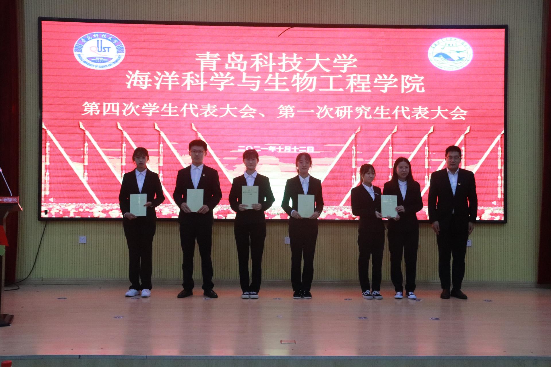 大會選舉產生了學院第四次學生代表大會常任代表和第四屆學生會主席團、第一次研究生代表大會常任代表和第一屆研究生會主席團、青島科技大學第二十四次學代會、第三次研代會海洋學院代表。