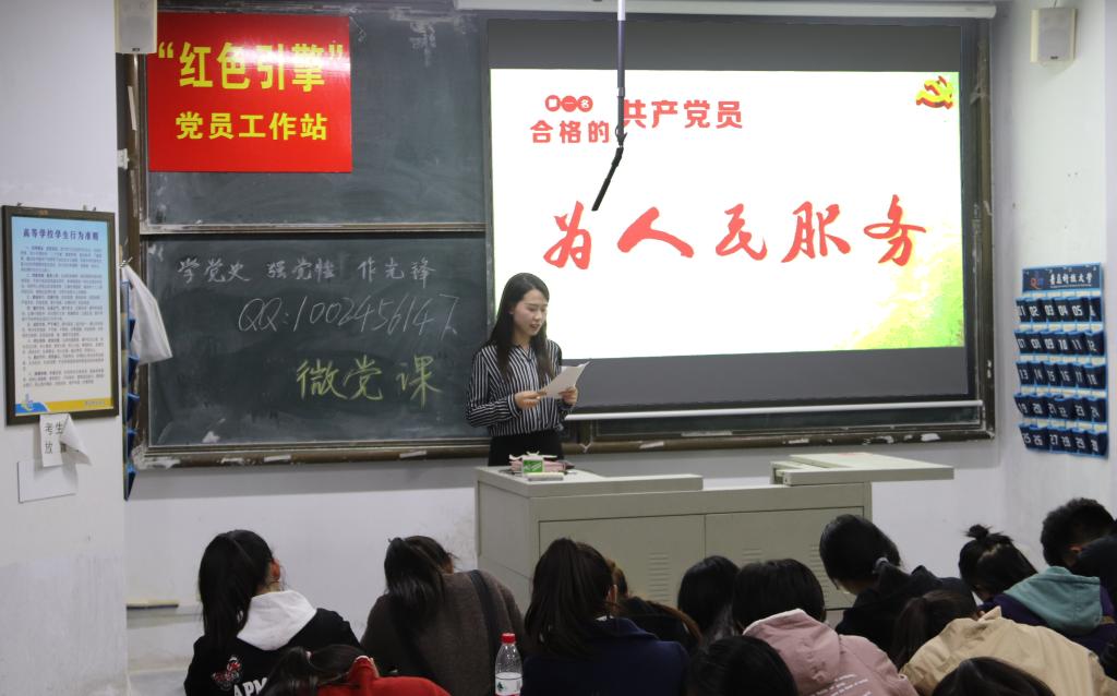 活動由“紅色引擎”黨員工作站站長劉金嶺和指導老師王祥梅主講。她們從黨的發(fā)展歷史、對黨的認識、黨員義務與權利等幾個方面向同學們展開介紹。自1921年建黨以來,中國共產(chǎn)黨走過了一段艱難的風雨歷程,時至今日,我們黨日益茁壯,歷經(jīng)了幾代黨員的艱苦奮斗,青年學生在大學這個重要階段,更需要繼承和弘揚中華民族的優(yōu)良傳統(tǒng),弘揚愛國奮斗精神,自覺恪守公民道德的基本規(guī)范,努力養(yǎng)成良好的道德品質(zhì)。