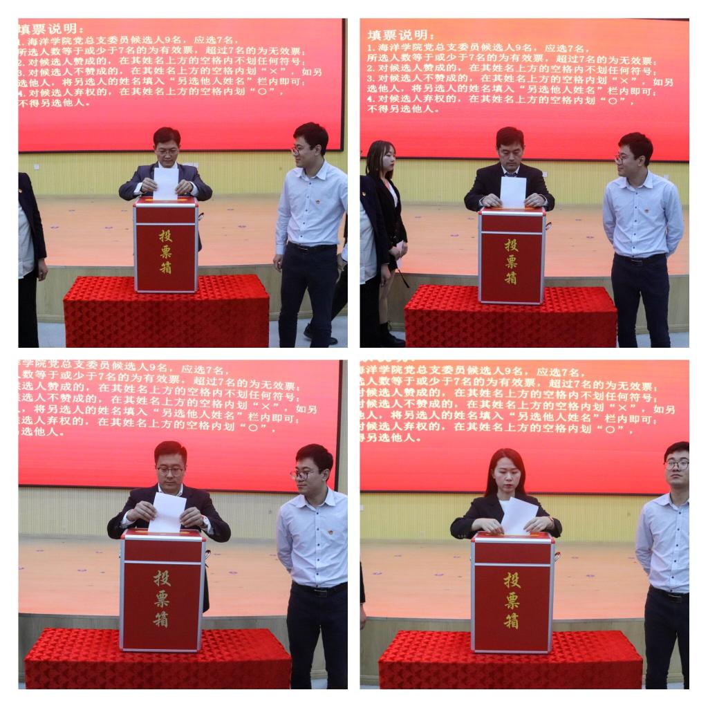 學(xué)院黨總支副書(shū)記兼副院長(zhǎng)臧傳永同志作了《關(guān)于海洋科學(xué)與生物工程學(xué)院黨總支黨費(fèi)收繳、使用情況》的工作報(bào)告。大會(huì)表決通過(guò)了《海洋科學(xué)與生物工程學(xué)院黨總支換屆選舉辦法》和監(jiān)票人建議名單、計(jì)票人名單。經(jīng)大會(huì)無(wú)記名投票,差額選舉出了王新萍(女)、李昉(女)、李浩、李高寧、周憲鋒、解萬(wàn)翠(女)、臧傳永七位同志(按姓氏筆畫(huà)排序)為海洋科學(xué)與生物工程學(xué)院黨總支新一屆委員會(huì)委員。