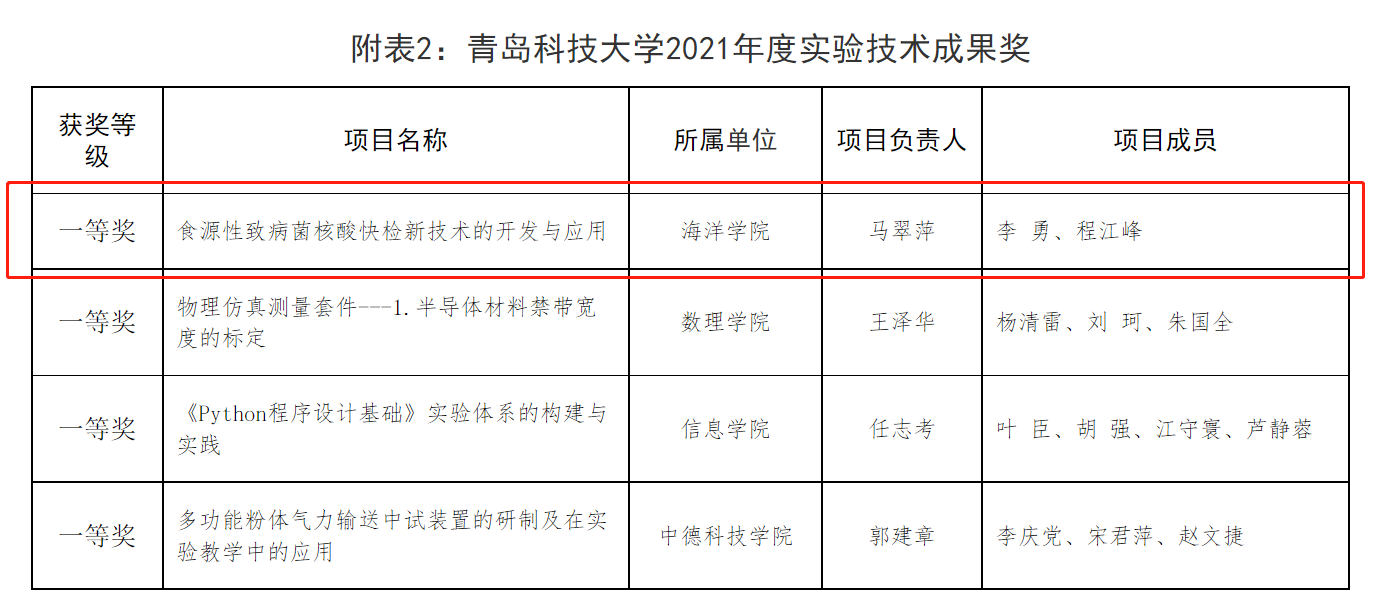 特色實(shí)驗(yàn)項(xiàng)目獲青島科技大學(xué)2021年度實(shí)驗(yàn)技術(shù)成果一等獎(jiǎng)