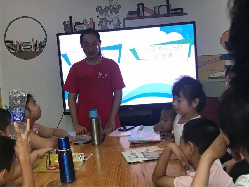 7月24日上午,志愿者們赴李滄區(qū)紫荊苑悅讀書房再次為孩子們講解新的海洋生物。團(tuán)隊成員徐彤曉先播放《海底總動員》中的部分片段,引出今天講解內(nèi)容海葵和小丑魚的故事。隨后從小丑魚的種類和生活習(xí)性兩個方面講解小丑魚,并帶領(lǐng)大家認(rèn)識了多種小丑魚。同時以提問的方式將這些知識授予孩子們,不僅提高了孩子們的積極性,同時還使課堂生動形象,活潑有趣,激發(fā)了孩子們的興趣。最后團(tuán)隊成員又將小丑魚和海葵的關(guān)系重點(diǎn)梳理了一遍,為大家講解了互利共生是什么意思,極大地提高了孩子們的積極性。